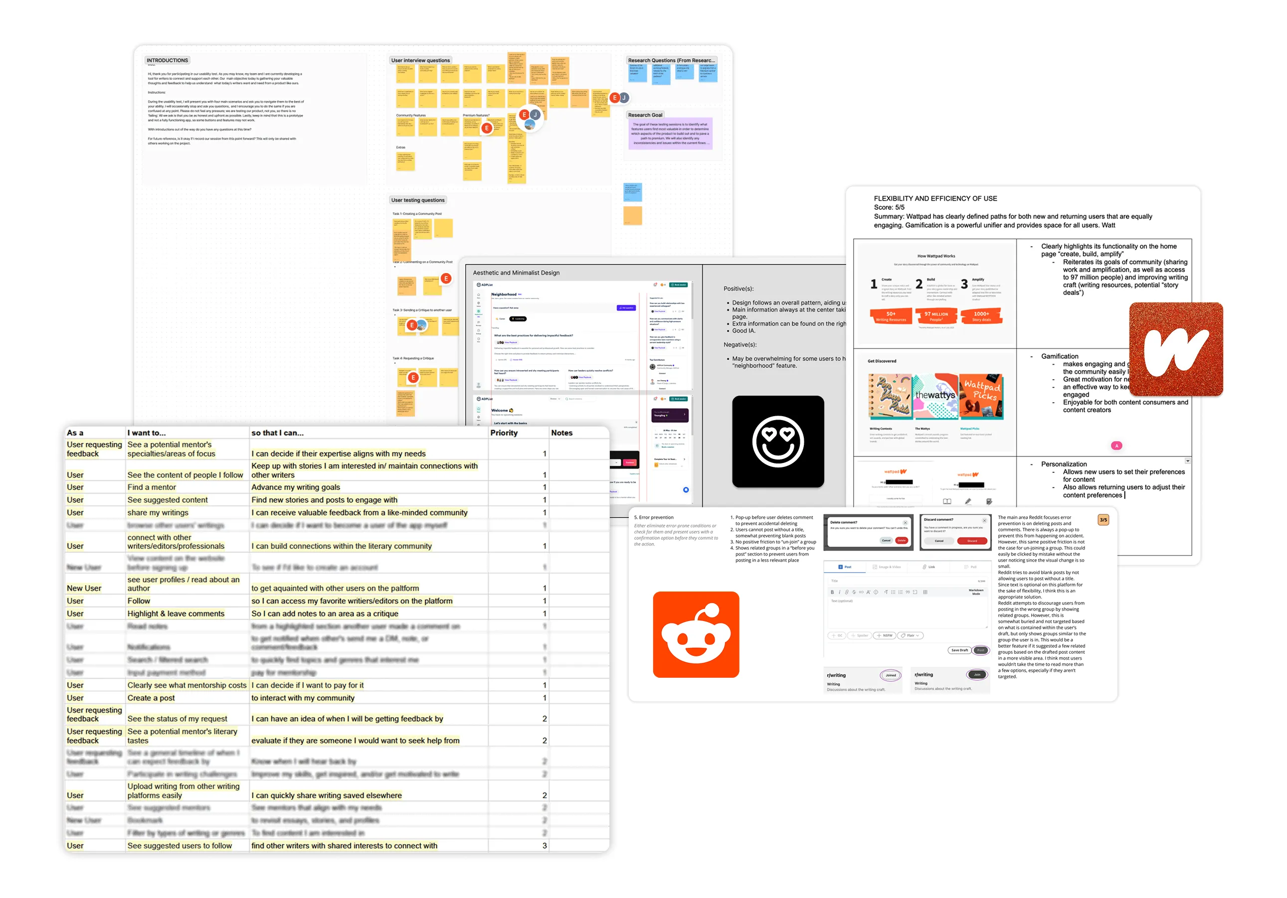 We interviewed five writers to explore their experiences and identify the core MVP elements: Community, Personal growth, and Monetization, and synchronized the findings through FigJam to narrow down the challenge. We also learned from competitors—ADP List, Wattpad, and Reddit, to sort out and inform the significant flows before jumping into our ideation phase.